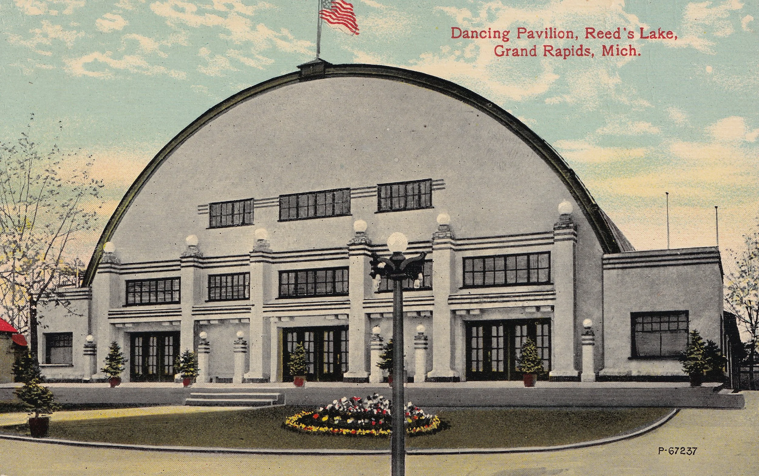 In the first half of the 20th Century Social dancing was a popular form of recreation across Michigan. Christine looks back at the era of dance halls and pavilions on the lakeshore, in amusement parks, resorts, hotels, nightclubs, and other spots, including restaurants and taverns that featured “dining and dancing.” She will share dancing styles, from the stately waltzes of the 1900’s to 1920’s novelty dances, and popular 1930’s and 1940’s swing and big band music. Upper right postcard depicts the Dancing Pavilion on Reeds Lake.